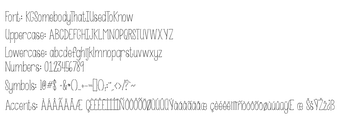 Семейство шрифтов предлагает варианты, которые варьируются от ультратонких до более текстурированных стилей, позволяя использовать его в широком диапазоне приложений. Его минимальные засечки и тонкие штрихи вызывают винтажную, но современную атмосферу, находя баланс между ностальгией и современным дизайном. KG Somebody That I Used to Know идеально подходит для тех, кто хочет привнести индивидуальность и очарование в свою работу, что делает его универсальным выбором для дизайнеров, стремящихся создать привлекательные и запоминающиеся визуальные образы.